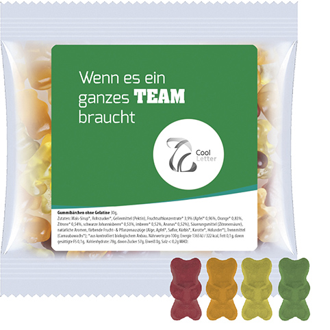 Organic gummy bears without gelatine, ca. 30g, express maxi bag with label